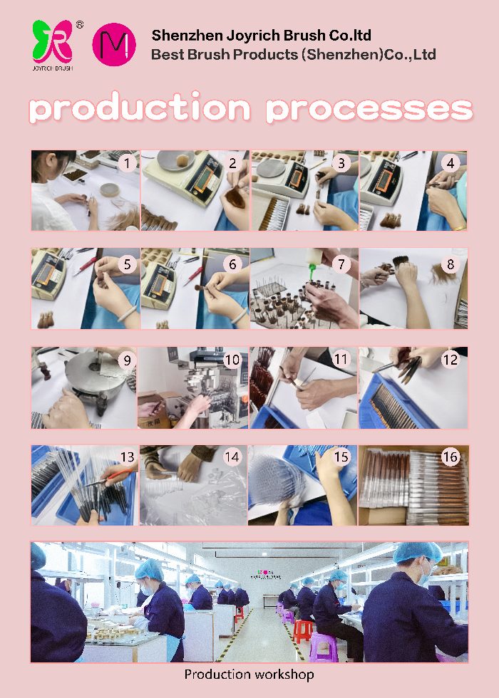 আমরা বিশেষ উত্পাদন সুবিধা, উন্নত সরঞ্জাম এবং অভিজ্ঞ কারিগরদের একটি দল নিয়ে কাজ করি। আমরা ব্যক্তিগত লেবেলিং, কাস্টম ব্রাশের আকার এবং হ্যান্ডেল ডিজাইন সহ কাস্টমাইজড পরিষেবাও অফার করি।